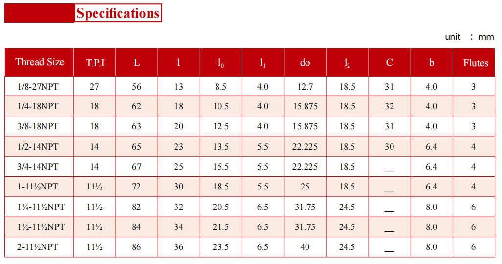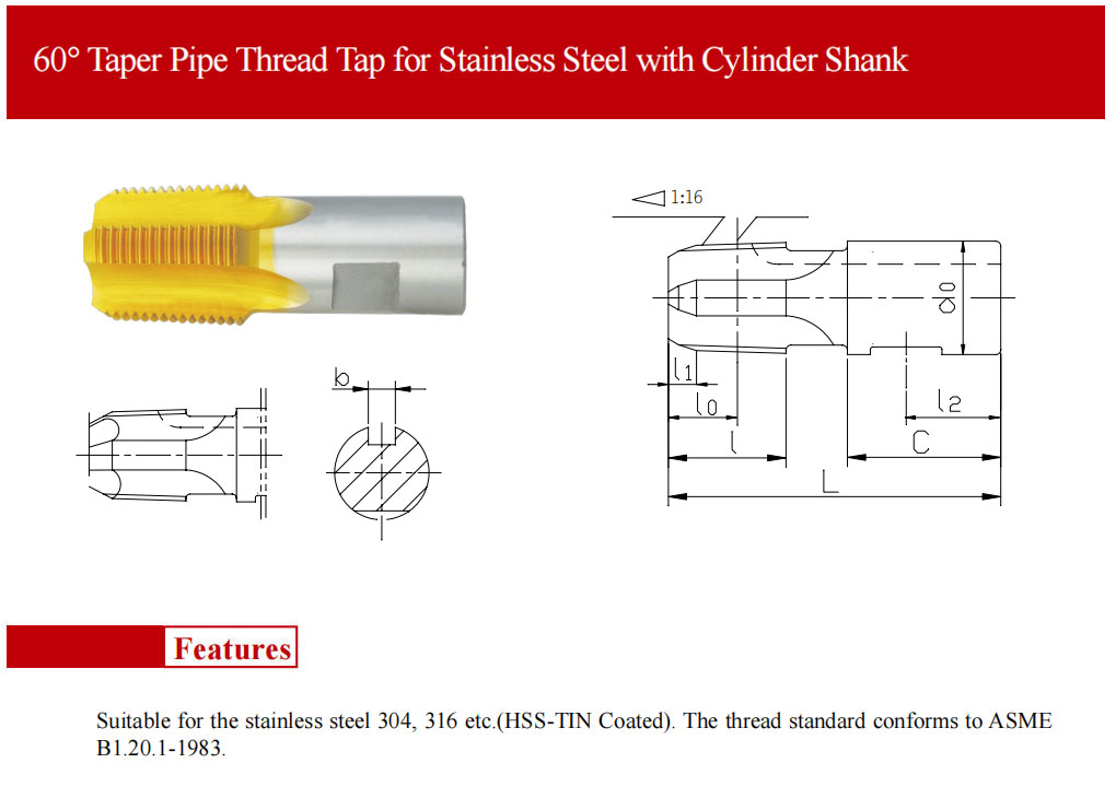 PRODUCT current location:Home > PRODUCT > 60° Taper Pipe Thread Tap for Stainless Steel with Cylinder Shank