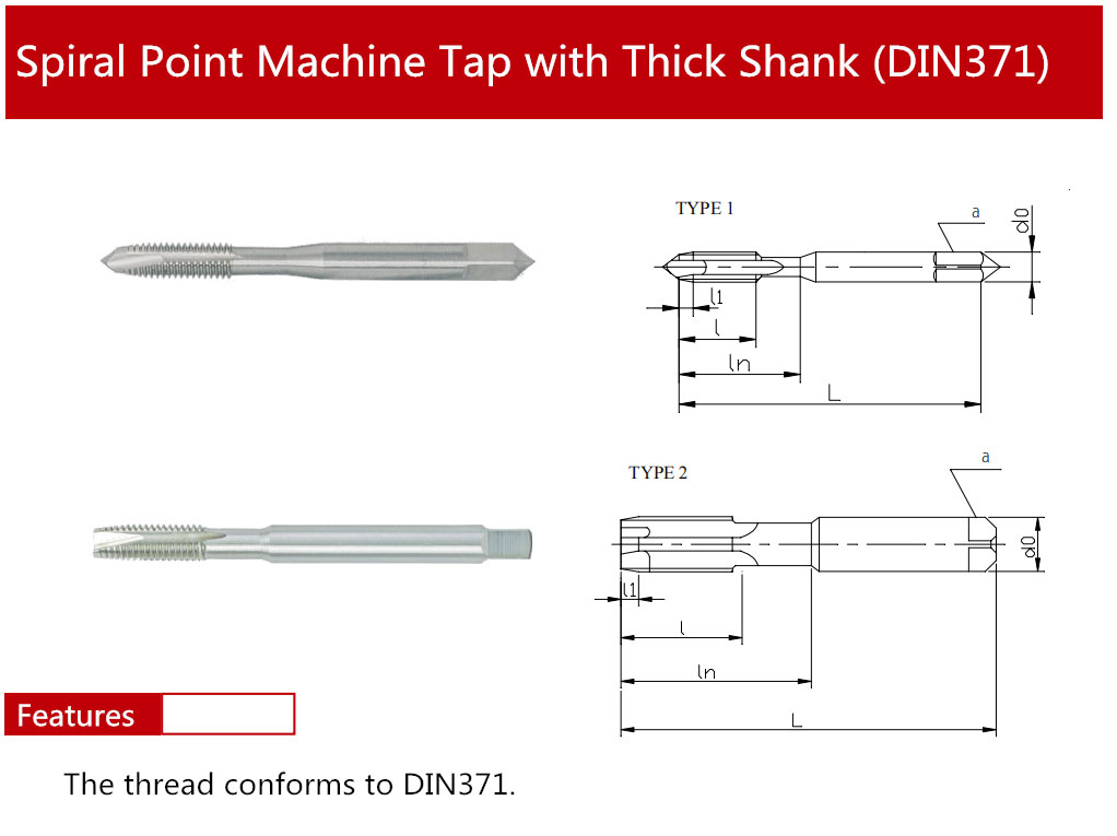 PRODUCT current location:Home > PRODUCT > Spiral Point Machine Tap with Thick Shank (DIN371)