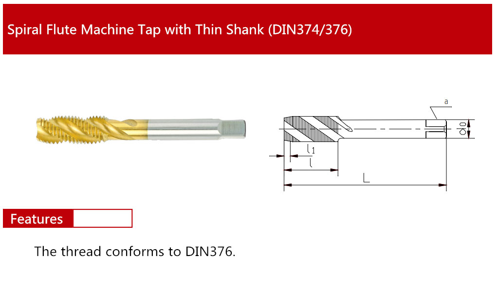 Spiral Flute Machine Tap with Thin Shank (DIN374-376)