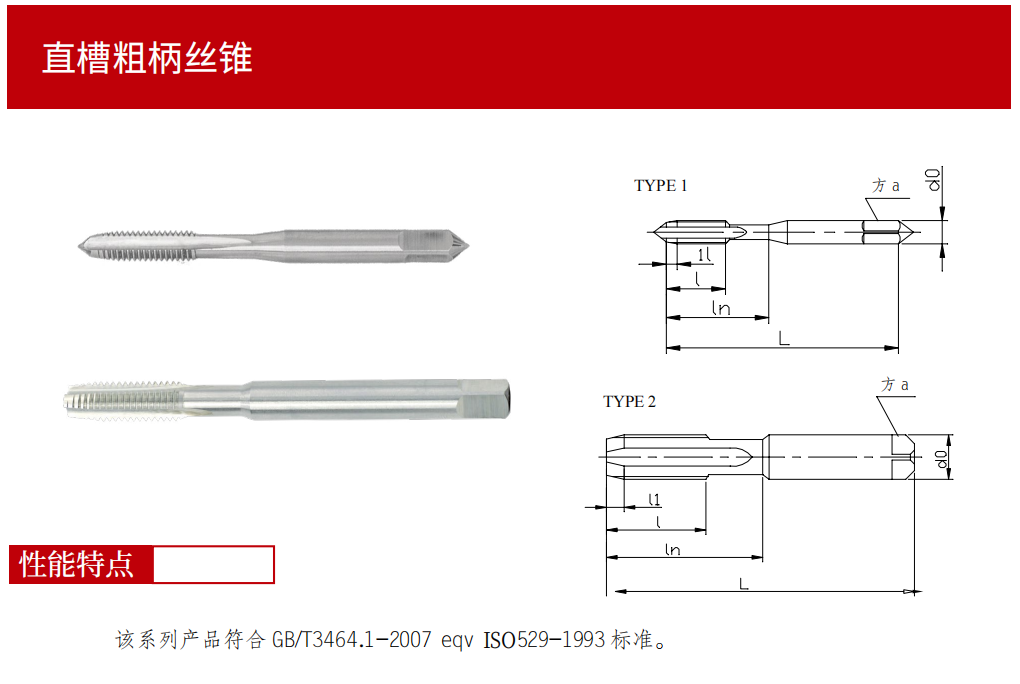 【國標(biāo)】粗柄普通螺紋直槽絲錐