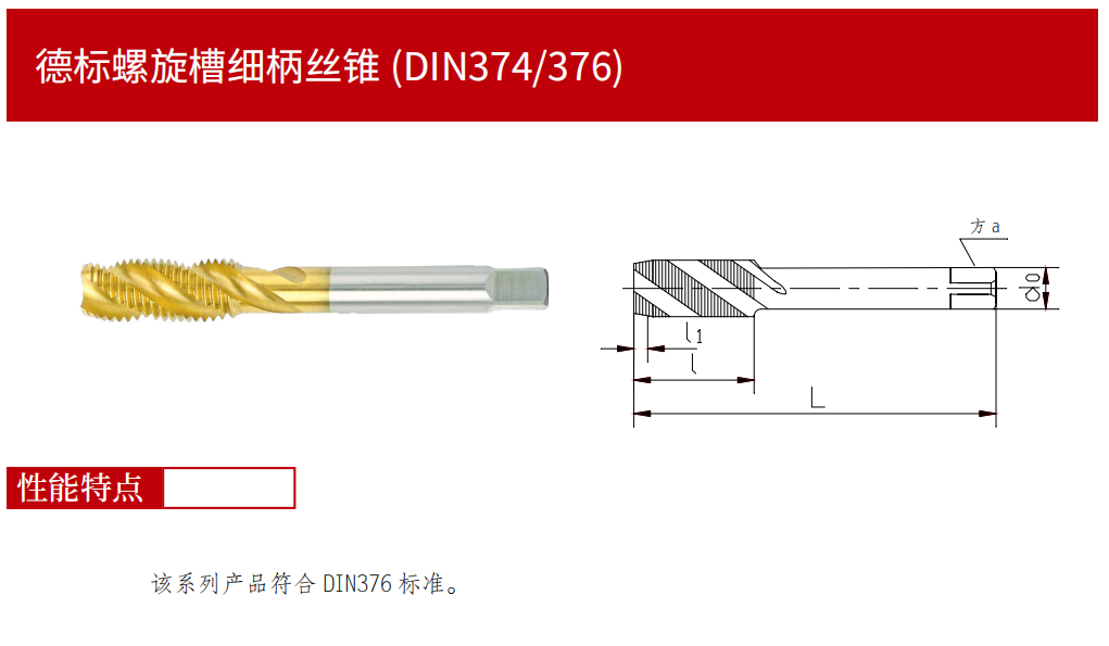 > DIN374/376德標螺旋槽細柄細柄絲錐