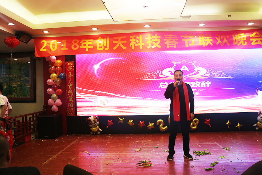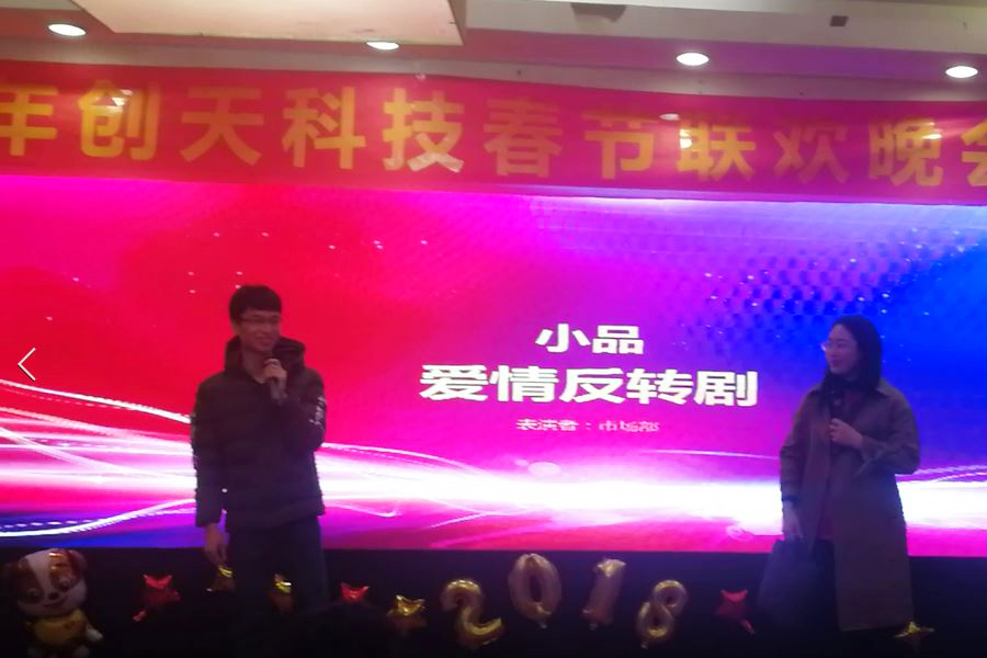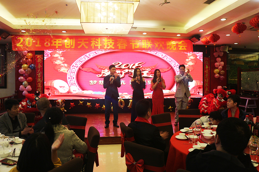 2018年2月10日晚6時(shí),廣州創(chuàng)天電子科技有限公司2018“追求卓越 創(chuàng)新發(fā)展 再創(chuàng)輝煌”春節(jié)聯(lián)歡晚會(huì)在夏園恒信大客家激情上演。晚會(huì)以歌曲、小品、表演秀、戲曲等形式,深情回顧了過去一年來,我司吳總帶領(lǐng)公司員工開拓創(chuàng)新、銳意進(jìn)取、拼搏奮斗的輝煌歷程,真情展現(xiàn)了春江人熱情擁抱新時(shí)代、闊步邁向新征程的精神風(fēng)貌。
